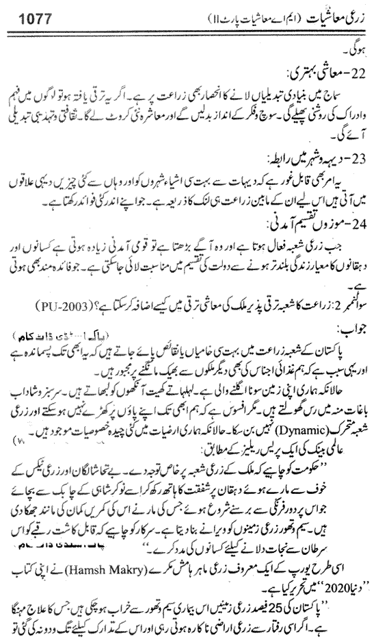 The MA Economics Part 2 notes available here.The pak study provide the MA Economics 2nd year paper No 7 Agricultural Economics notes in 3 books, you can read here the book no 1