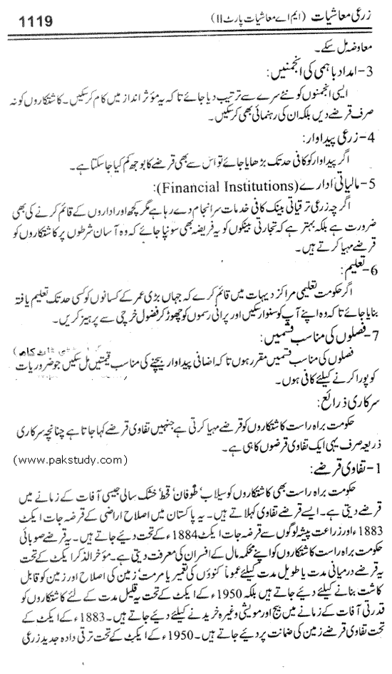 The MA Economics Part 2 notes available here.The pak study provide the MA Economics 2nd year paper No 7 Agricultural Economics notes in 3 books, you can read here the book no 1
