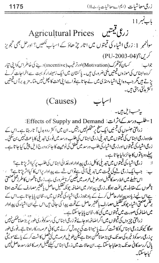 The MA Economics Part 2 notes available here.The pak study provide the MA Economics 2nd year paper No 7 Agricultural Economics notes in 3 books, you can read here the book no 1