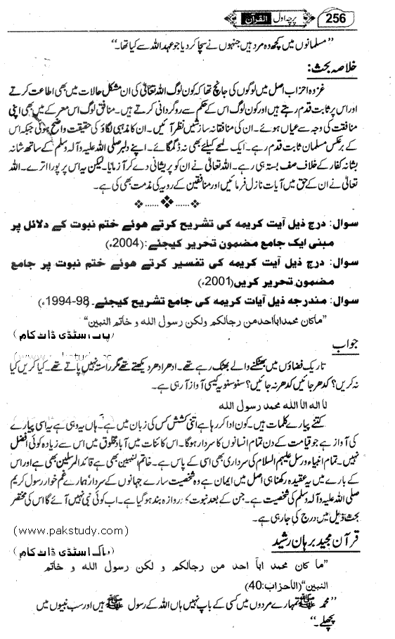 MA Islamic Studies Notes Al-Quran al-Hakeem
