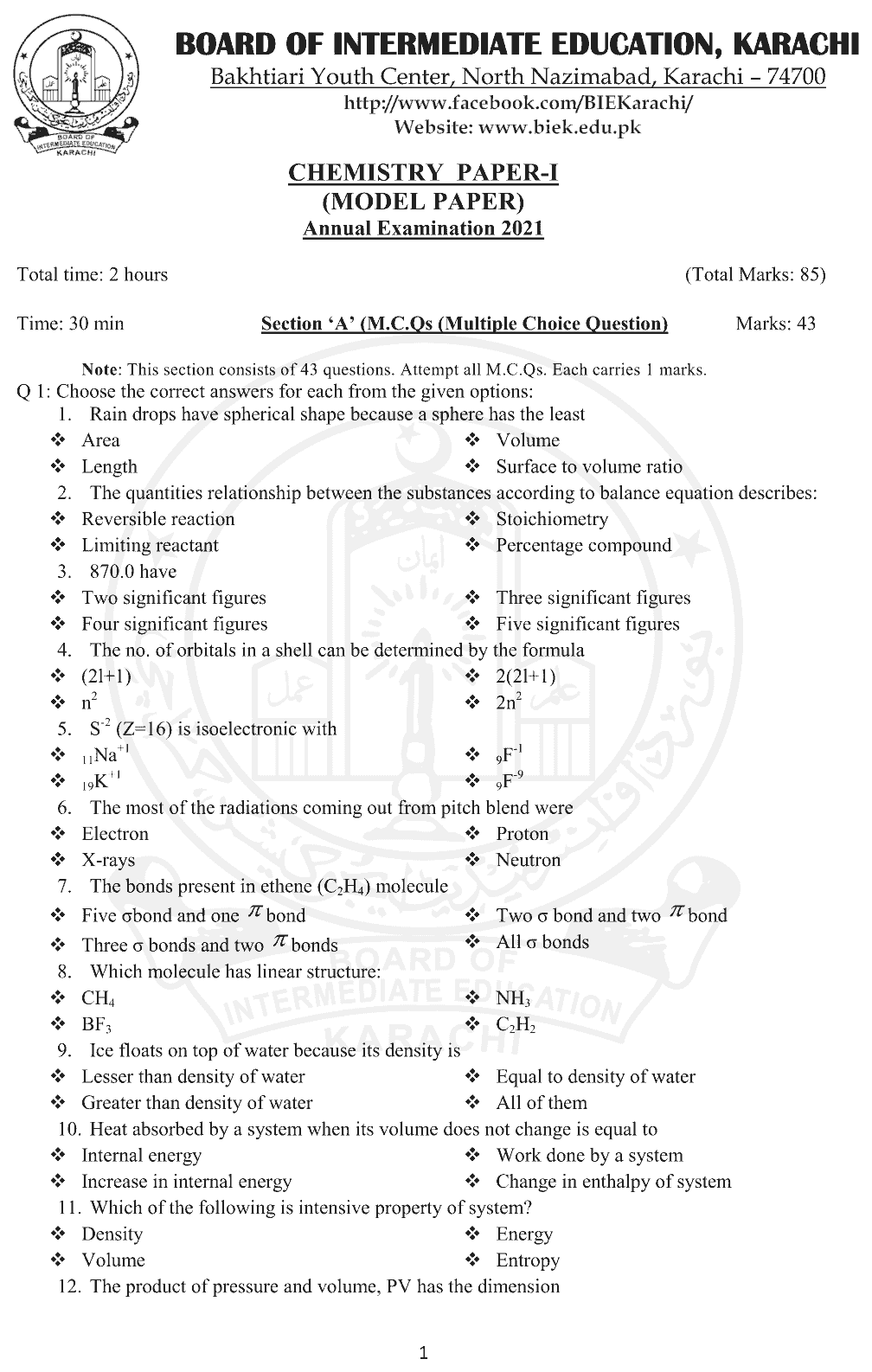 The complete Model Paper Class 11 Karachi Board available on fg study. It is very important for you to study before taking the karachi board exam.
