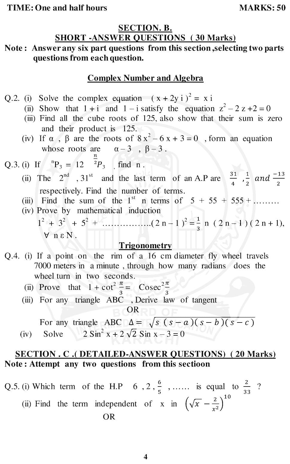 Model Paper Class 11 Karachi Board